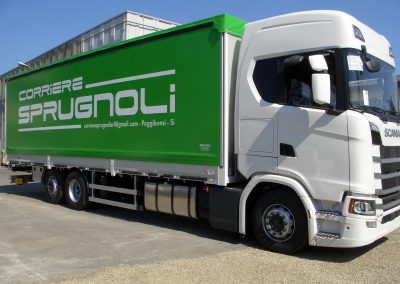- Centine fisse: le fisse (come le sollevabili) possono essere dotate, in base alle richieste del cliente, di stecche TIR in alluminio laterali e posteriori, sponde laterali, piantoni centrali scorrevoli, piantoni anteriori e posteriori fissi, porte posteriori. Il tetto, conformato in maniera tale che l’acqua piovana possa scivolare via dal telo, può essere scorrevole a fisarmonica. Il telo laterale invece è scorrevole e di facile movimentazione;