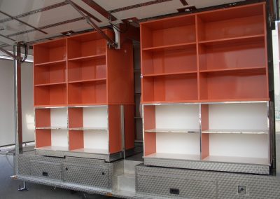 I veicoli abbigliamento sono adibiti alla vendita di vestiti, abiti e varie tipologie di indumenti. La struttura dell’autonegozio può essere predisposta con varie tipologie di scomparti, ripiani, cassetti e cabina prova.